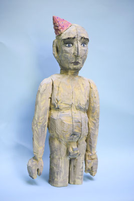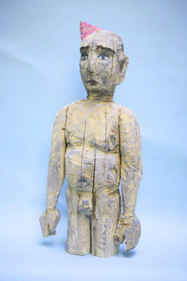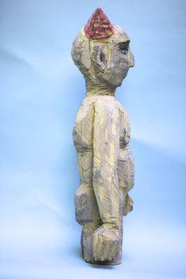 "Mensch mit Partyhut" Weißtanne, Acryl, 2025