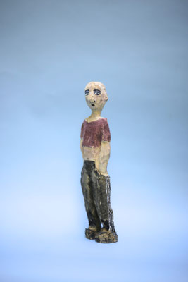 "Mensch mit blauer Kappe" Linde, Acryl 2023